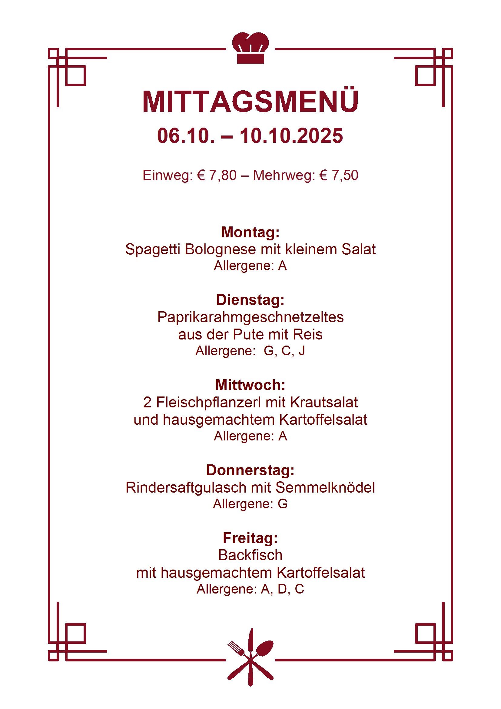 Besonders beliebt ist unser täglich frisch gekochter Mittagstisch, den Sie sowohl vor Ort genießen als auch bequem mit nach Hause oder ins Büro mitnehmen können. Seit über 15 Jahren verwöhnen wir Groß und Klein, Jung und Alt mit abwechslungsreichen, hausgemachten Gerichten – immer frisch, herzhaft und aus besten Zutaten der Region zubereitet.